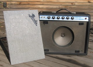 This is a nice, clean example of a 'silverface' Fender Princeton Reverb produced by Fender Musical Instruments from 1968-1981. These amplifiers were preceded by the nearly indentical but more collectible 'blackface' model produced from 1964-1967. They used a pair of 6V6 output tubes to produce roughly 12 Watts through an 8-inch speaker, usually an Oxford or CTS model.